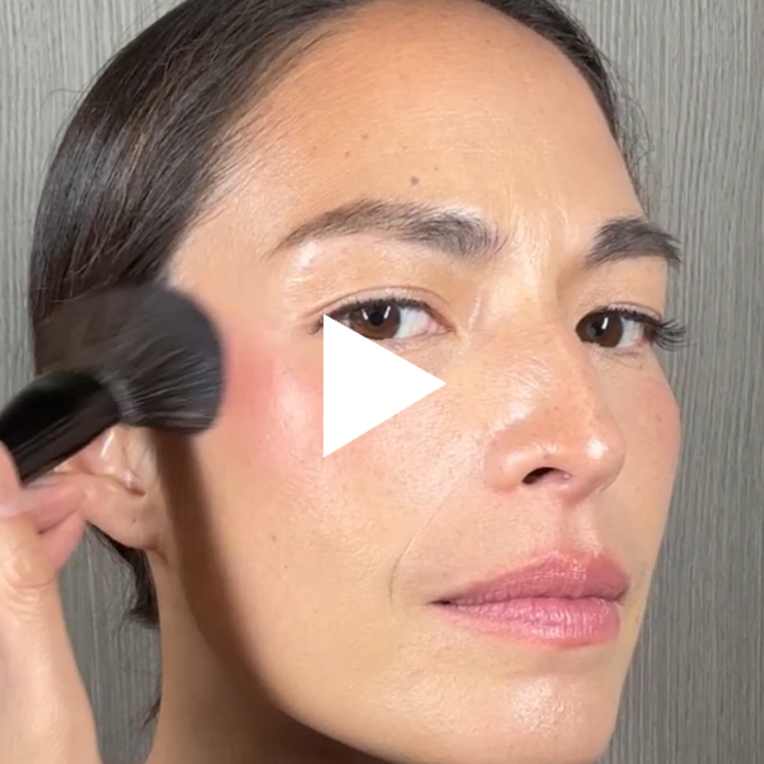 • Pour une touche de couleur lumineuse, associez deux teintes de Blush. Appliquez d’abord une première teinte de base pour colorer les joues en transparence. Superposez ensuite une teinte plus lumineuse dans une nuance similaire sur les pommettes et estompez.