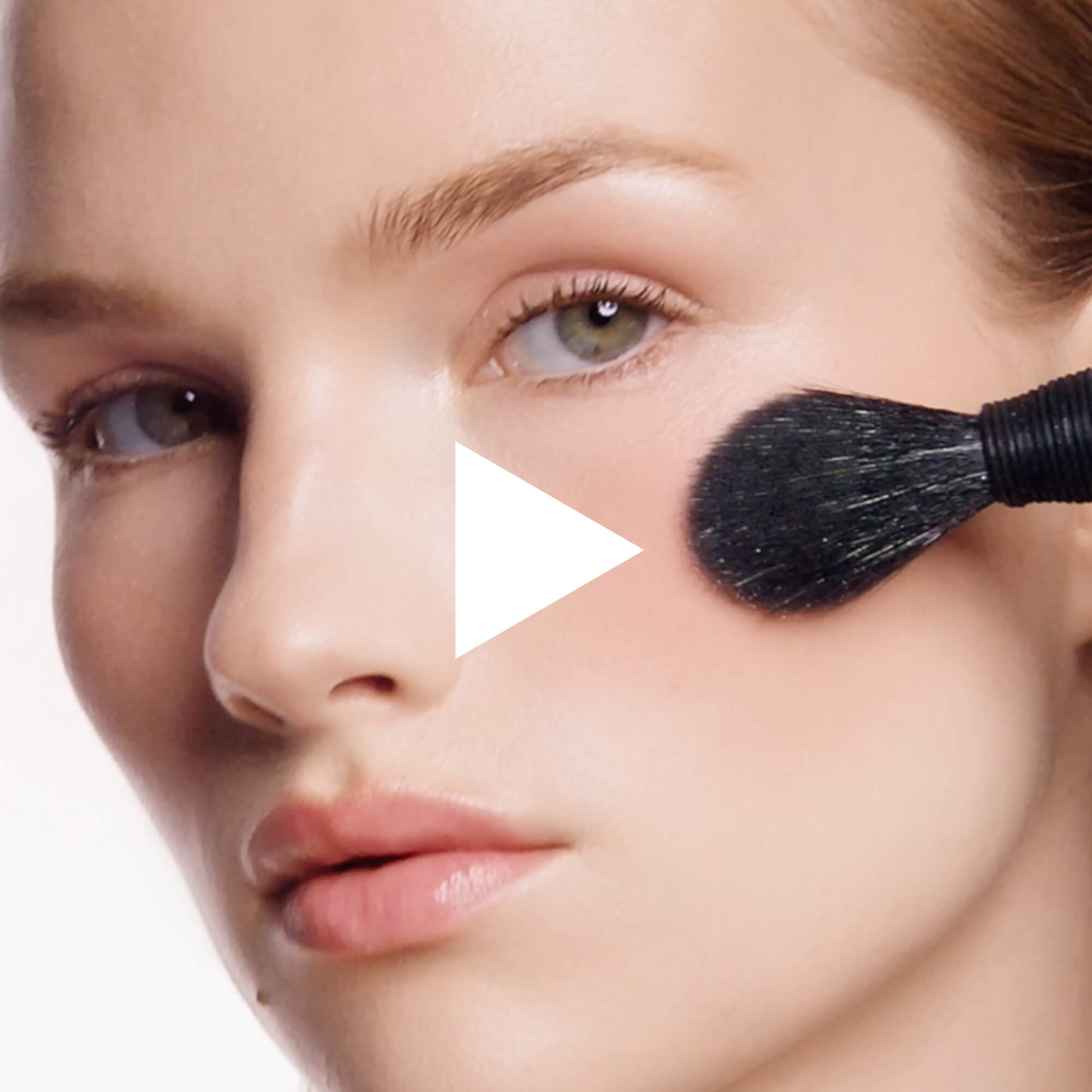 • Appliquez sur le haut des pommettes avec le pinceau #15 Precision Powder Brush. Avec la pointe du pinceau, balayez la matière sur l'arête du nez et légèrement sur l'arc de Cupidon.